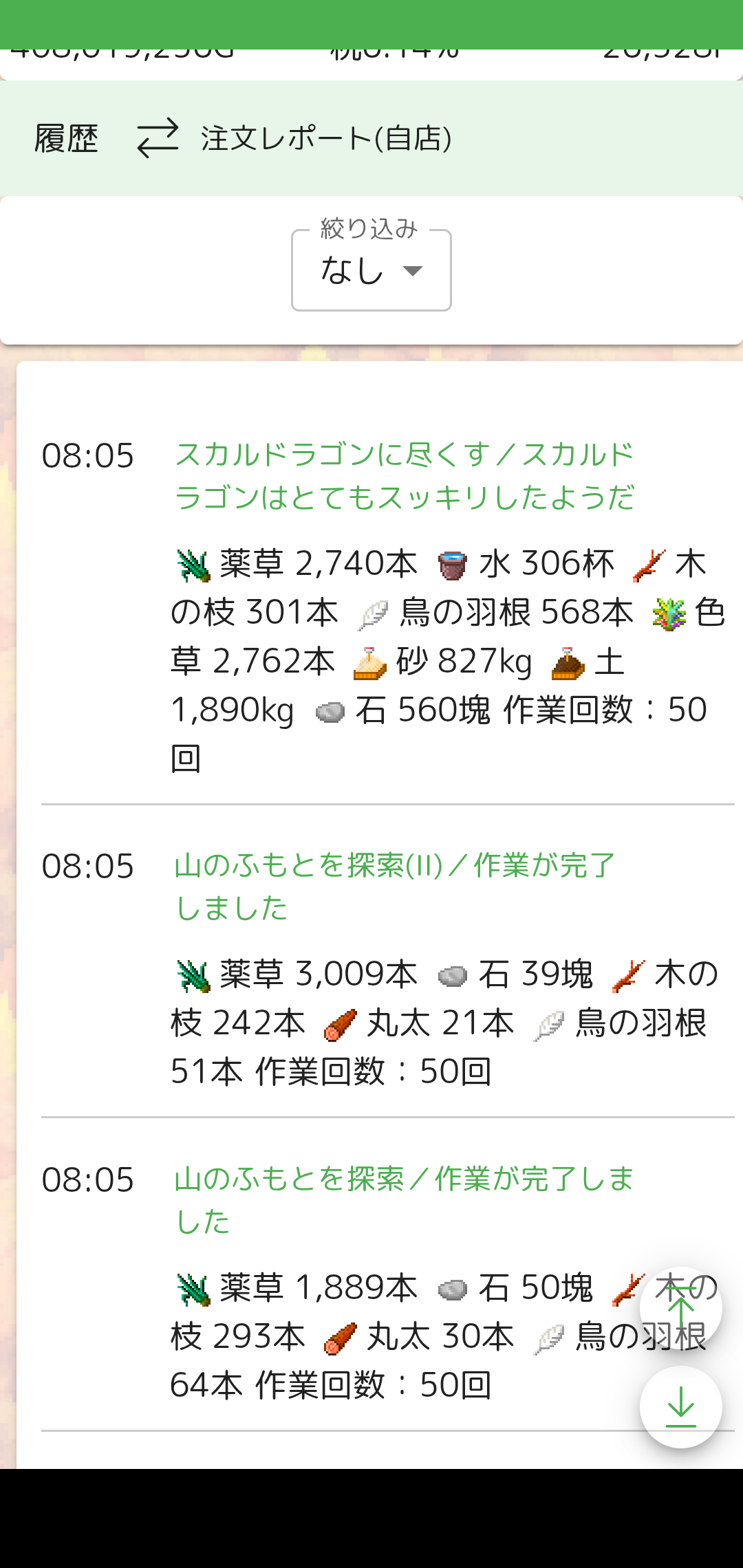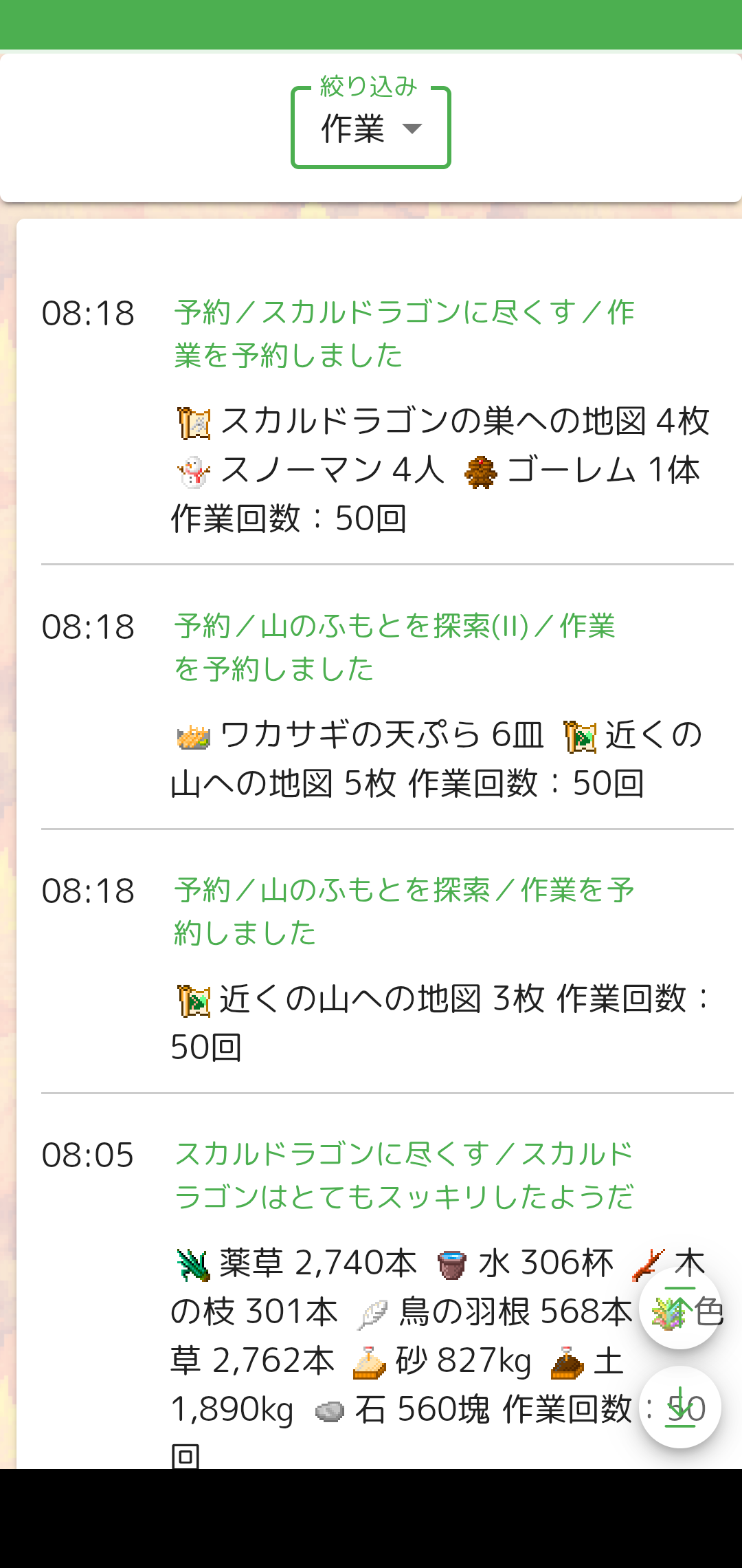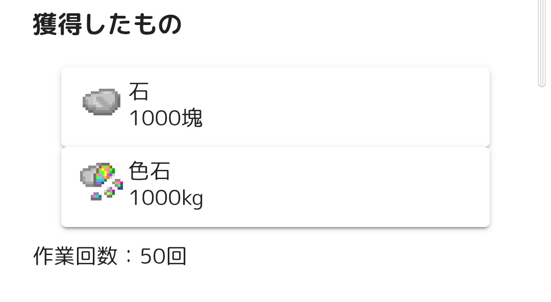 作業50回で比較すると山のふもとを探索(Ⅱ)の方が(Ⅰ)より薬草1s多く採れた。