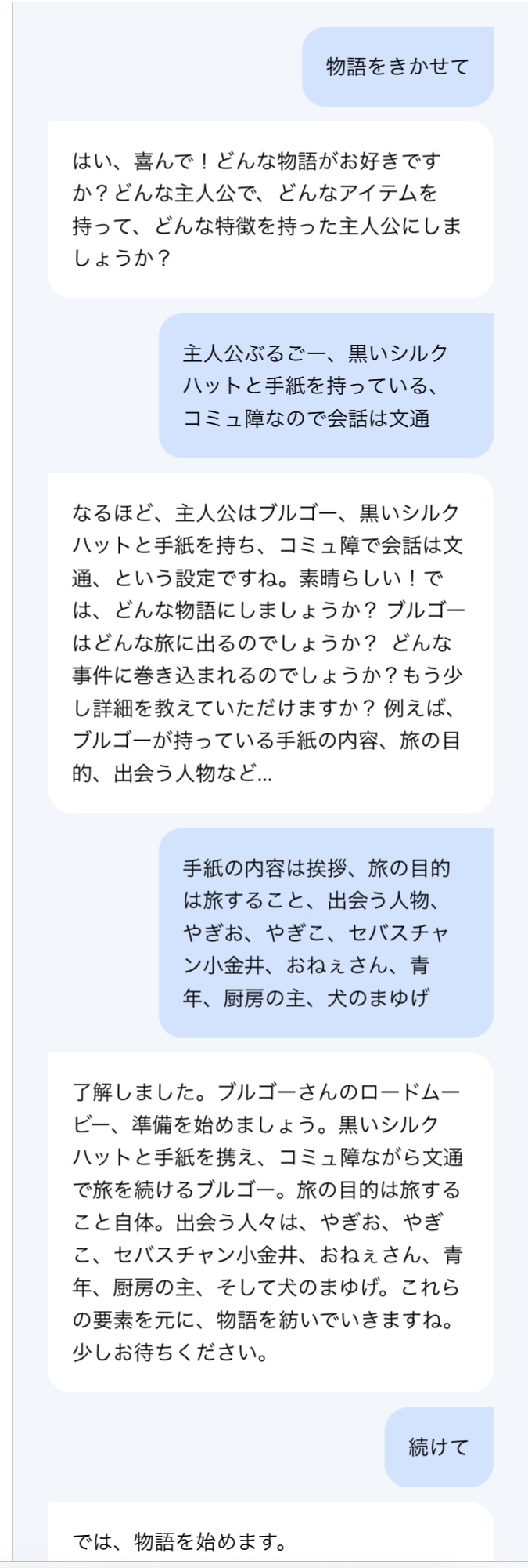 ずっと設定の質問だけ続く→「いいからはじめて」