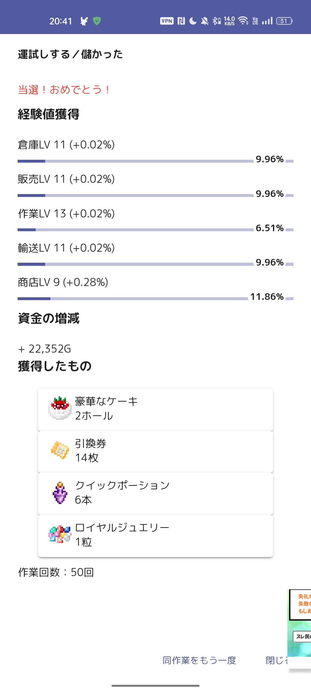 作業回数:50回