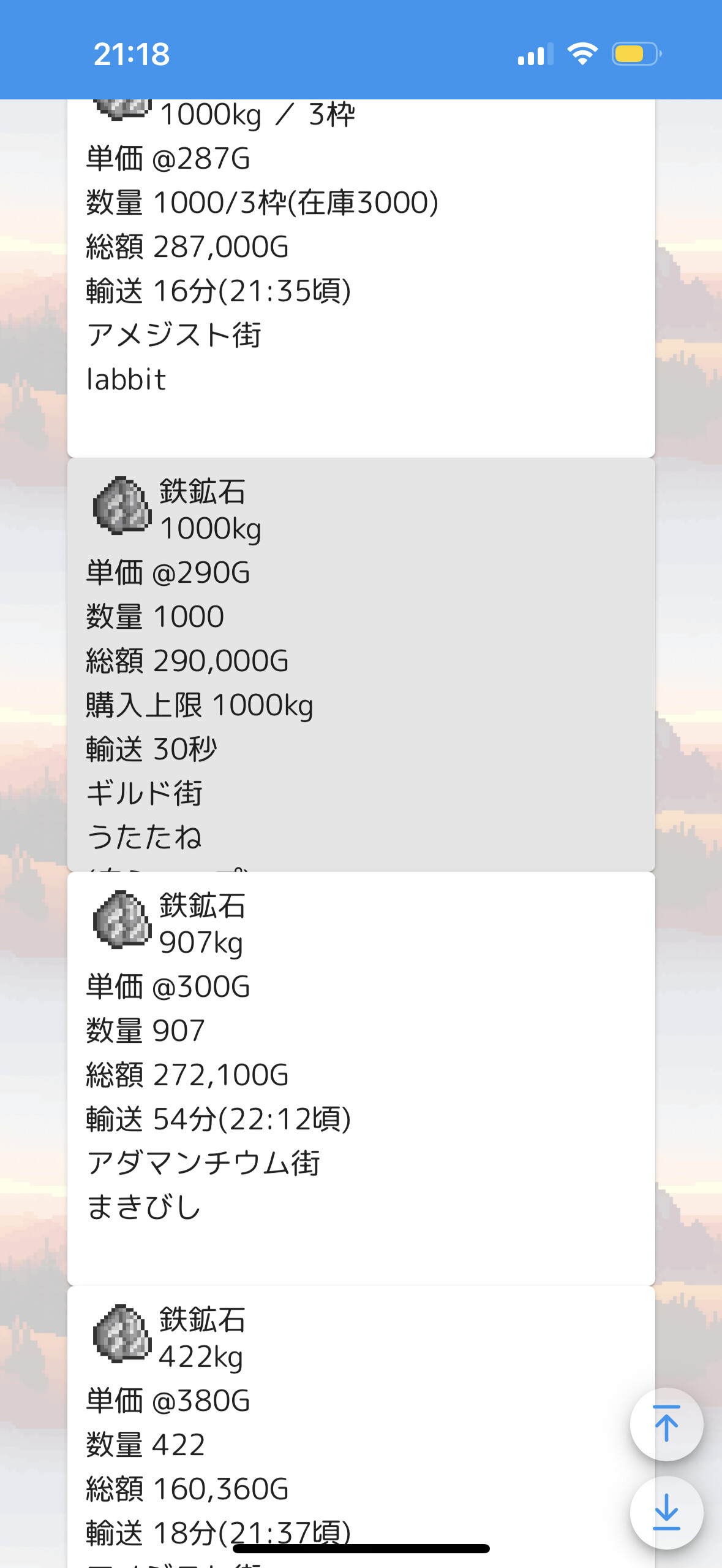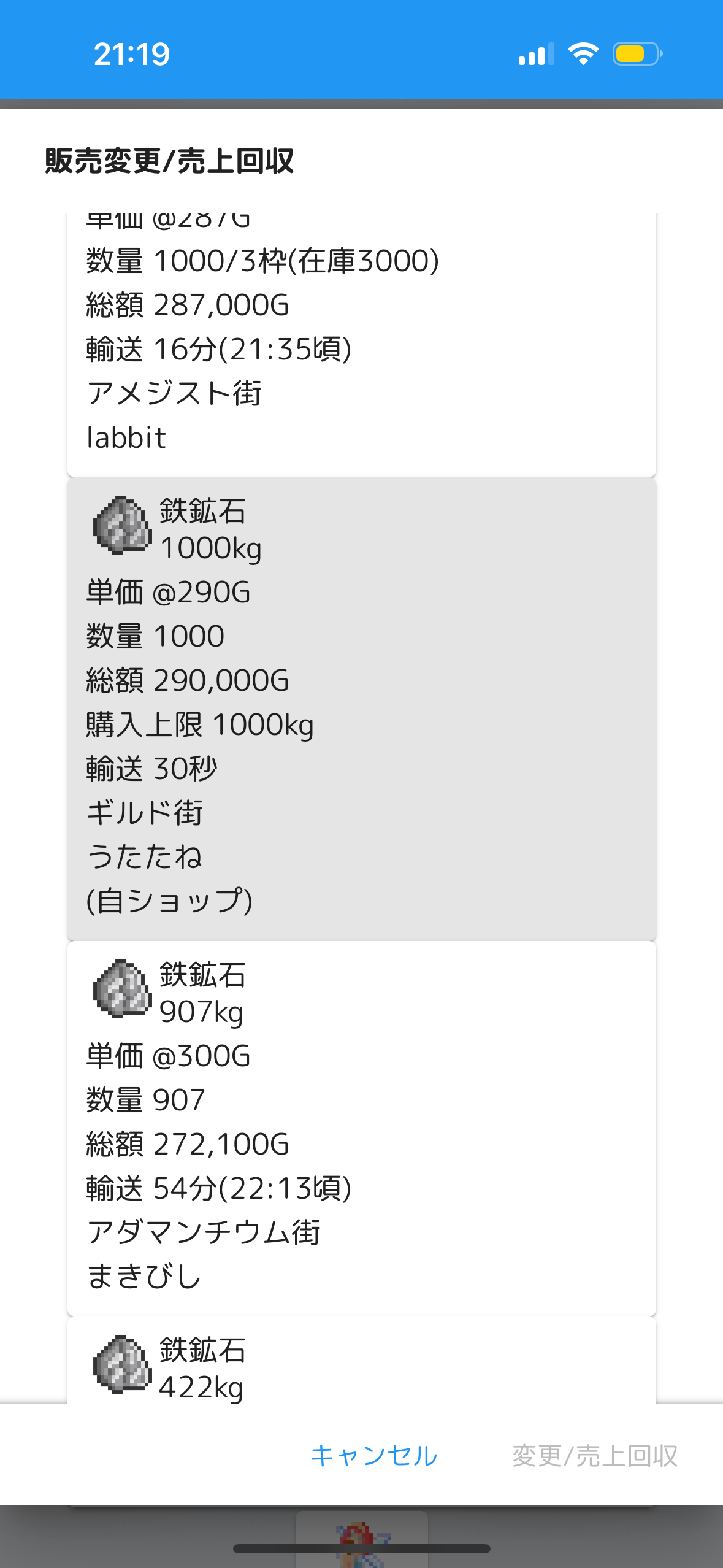 仕入れ画面(画像3枚目?)で自店の販売商品を確認すると(自ショップ)が消えてしまいます。