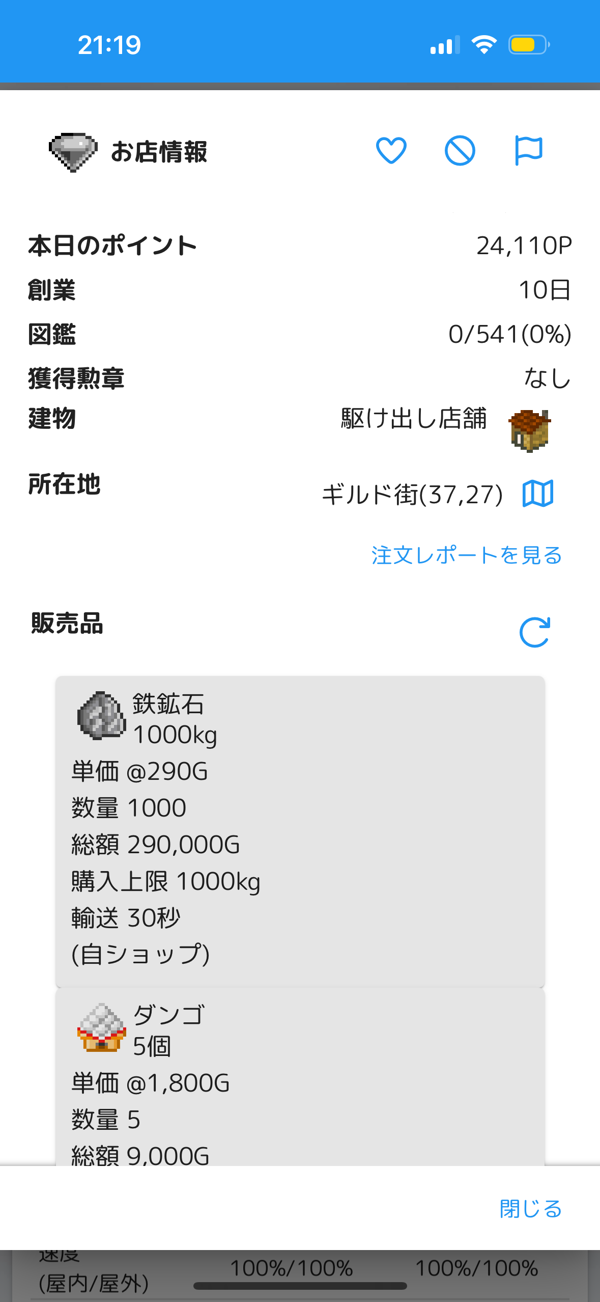 お店画面(画像2枚目?)とお店情報(画像1枚目?)では(自ショップ)は消えず、確認することができました。