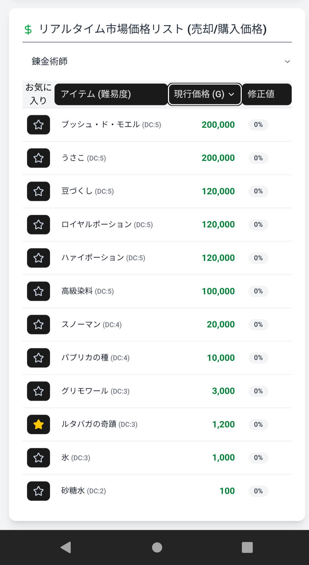 表示の部分に並べ替えとかお気に入りなどをつけてみました