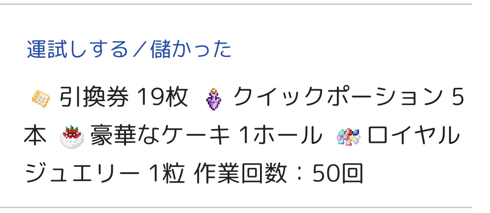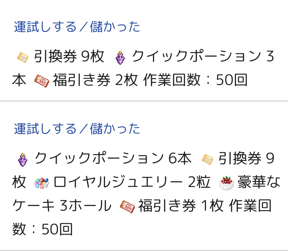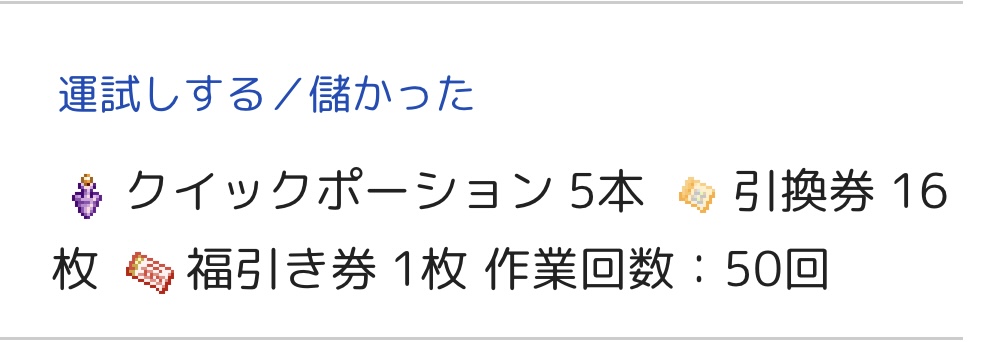 確率で見ても排出率2%の韋駄天が出ているとはいえ、引換券(10枚)とクイポの合計が8割なので、(36回程度で完璧に分かるはずもないとはいえ)少なくとも今回は景気だからこその上振れのようなものは見られませんでした