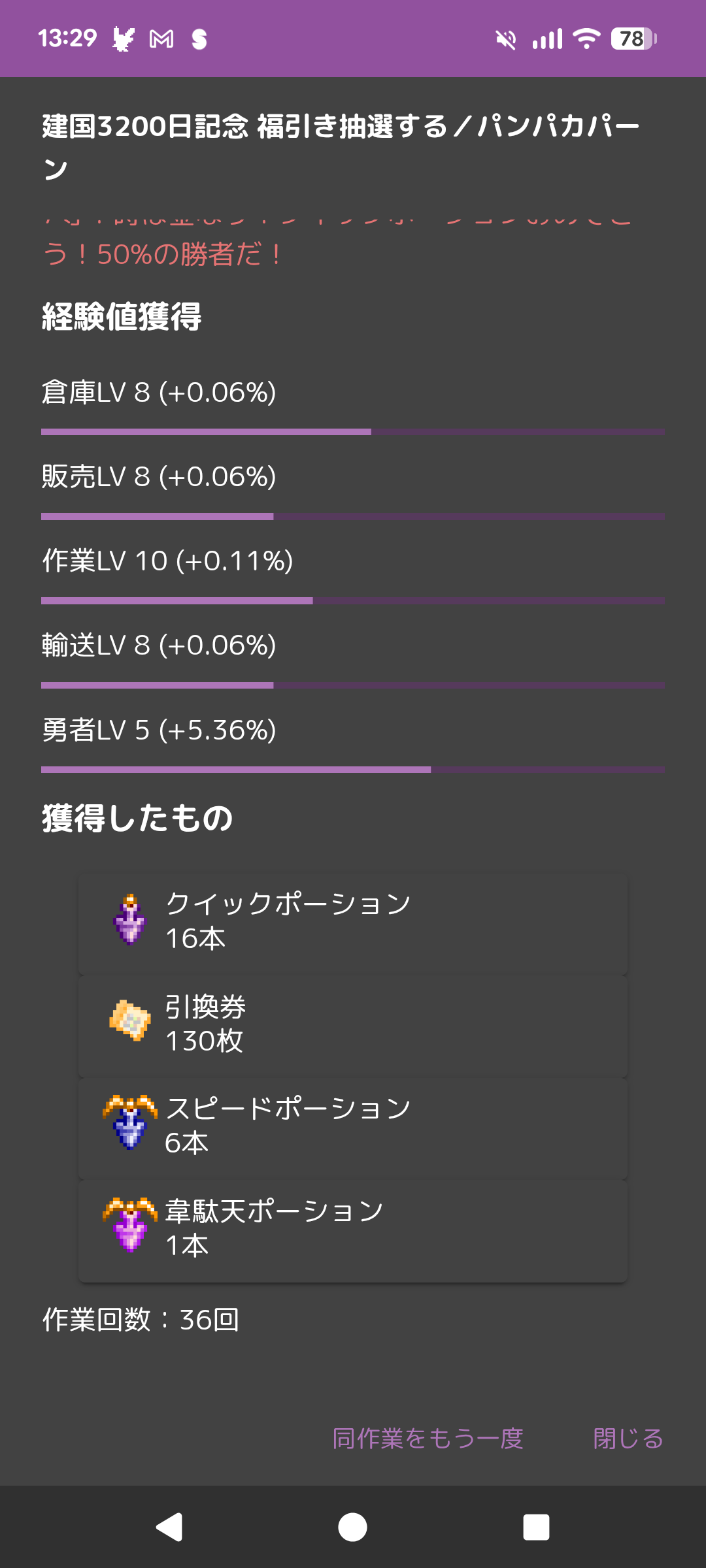 当選!おめでとう!経験値獲得